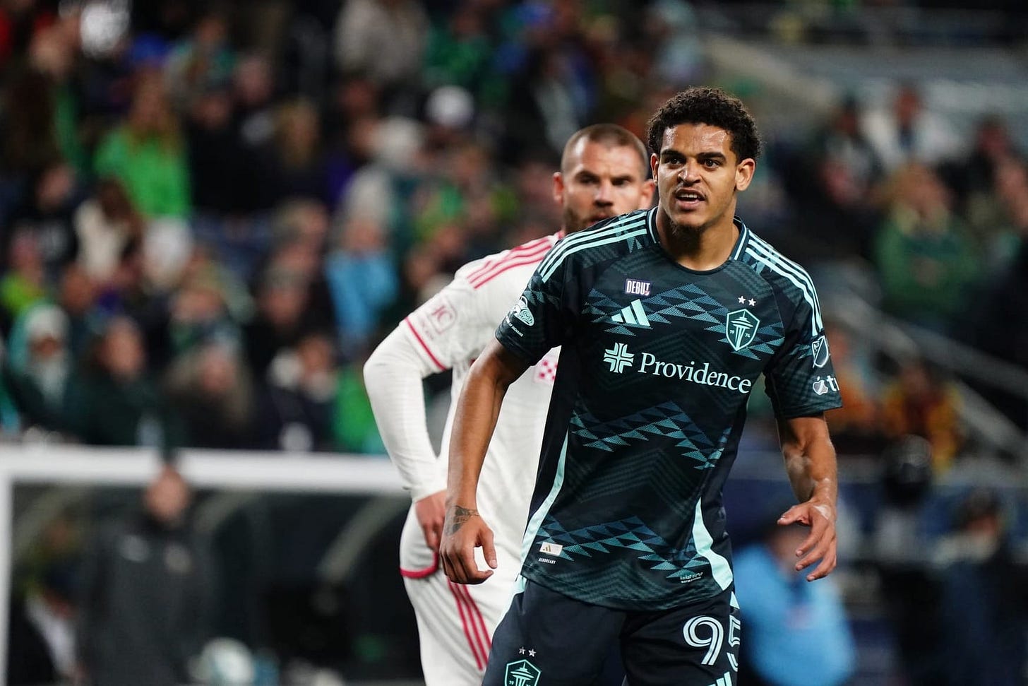Emmanuel Latte Lath received the ball at his own box three minutes later, beat one defender with a body fake, beat another by taking a touch past and going around him the other way, and drove on the break all the way to Seattle’s final third. What looked to be a certain goal was quickly taken care of by Seattle’s Obed Vargas, who tracked back and forced Latte Lath to take a touch backwards. He slipped and failed to keep the ball while on the ground.