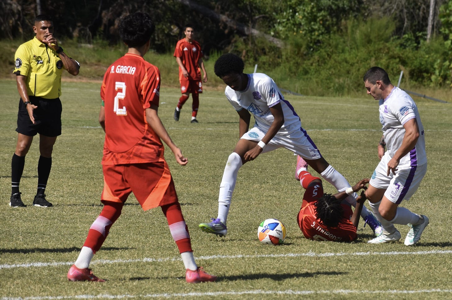 The City fouls increased in the second half mostly on late challenges and desperate sliding tackles and Augusta used one of the moments to play a quick free kick from the midfield to catch the Atlanta City defense flat footed for their fourth goal. Augusta’s #4 Kaynan Ibrahim collected the quick pass forward and finished the play slotting the ball into the net despite the onrushing City goalkeeper for his brace.