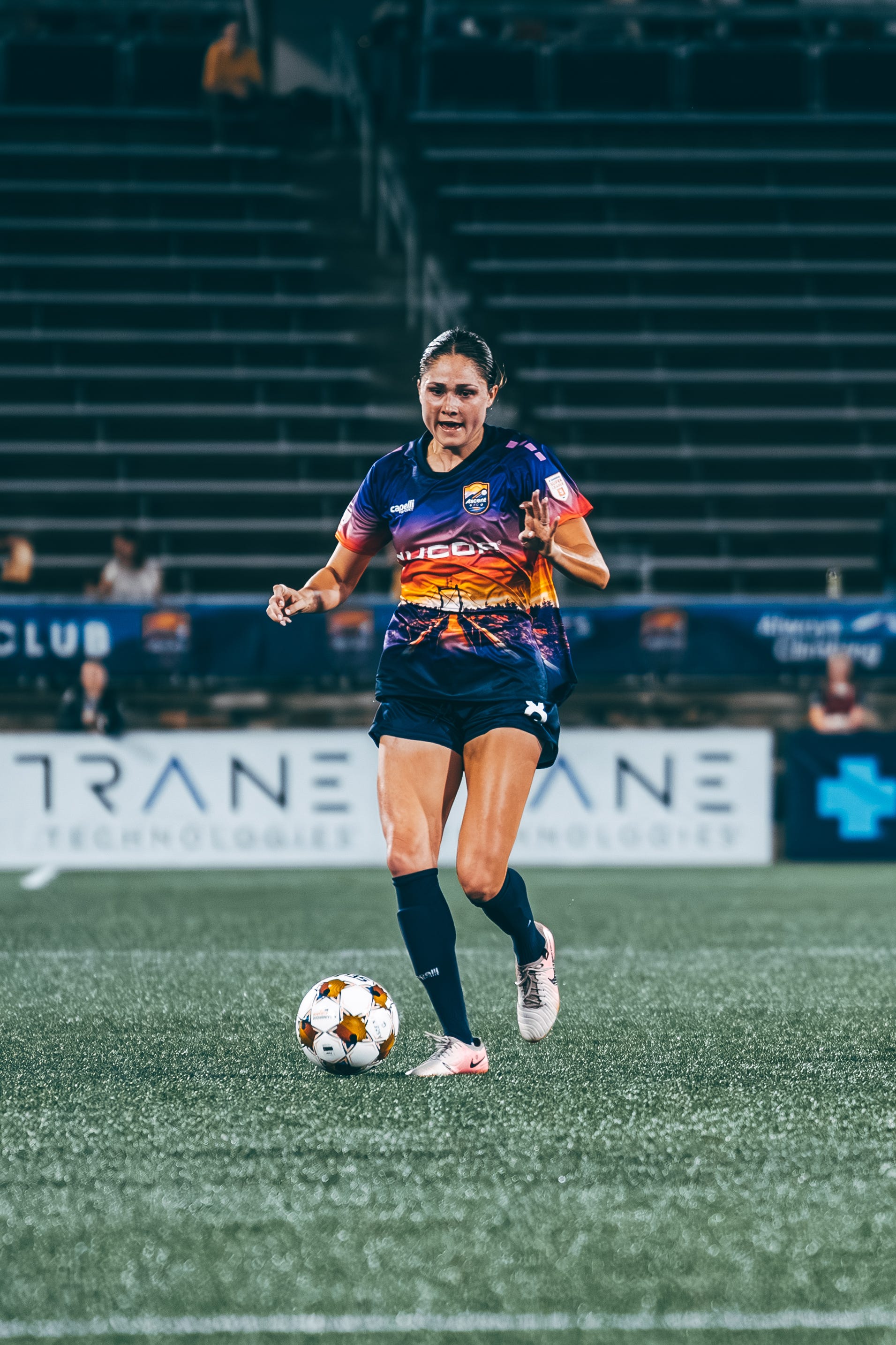 In the 40th minute, the Ascent broke through. A corner from Emily Moxley created a scramble in front of goal, and after a blocked shot from Taylor Porter, the ball fell to Mia Corbin. Surrounded by defenders, Corbin managed to fire it into the back of the net, putting Carolina ahead 1–0. Just two minutes later, Jill Aguilera nearly doubled the lead, but her strike went just over the bar.