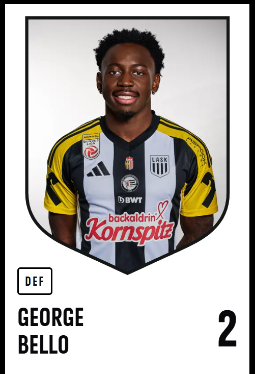 Bello has made 41 appearances for LASK in 2024-2025 across all competitions playing at left back. The 23-year old has two goals and three assists in the 3,465 minutes played. LASK are currently in first place in the unique Relegation Round format of the league sitting on 36 points. The top two in the Relegation Round play in a playoff to determine the final spot in Europe and are safe from relegation.