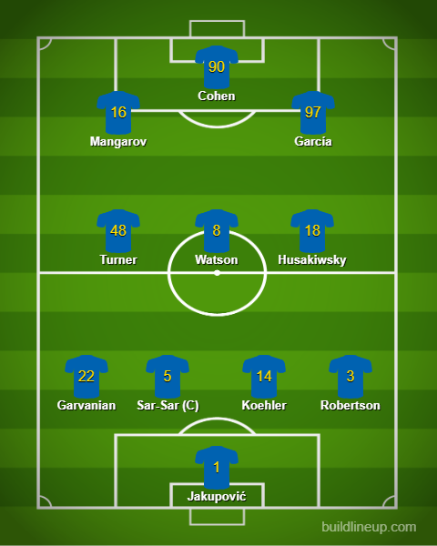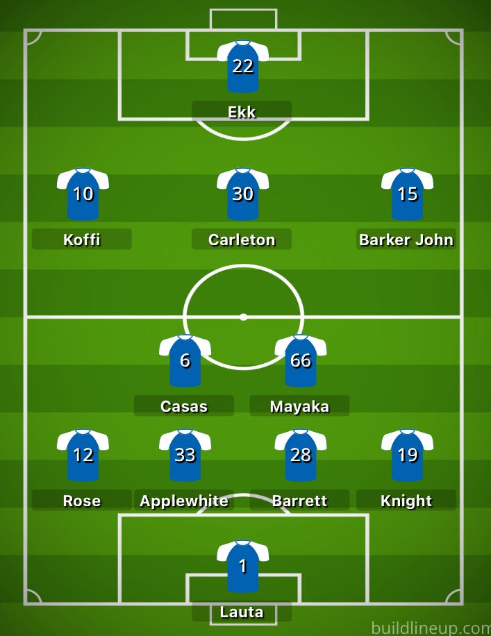 Midfield is settled. As has been the case the majority of the year, Pep Casas and Phillip Mayaka lock down the two midfield spots, supporting a front four of Christian Koffi, Alan Carleton, Damien Barker John and Maximus Ekk.