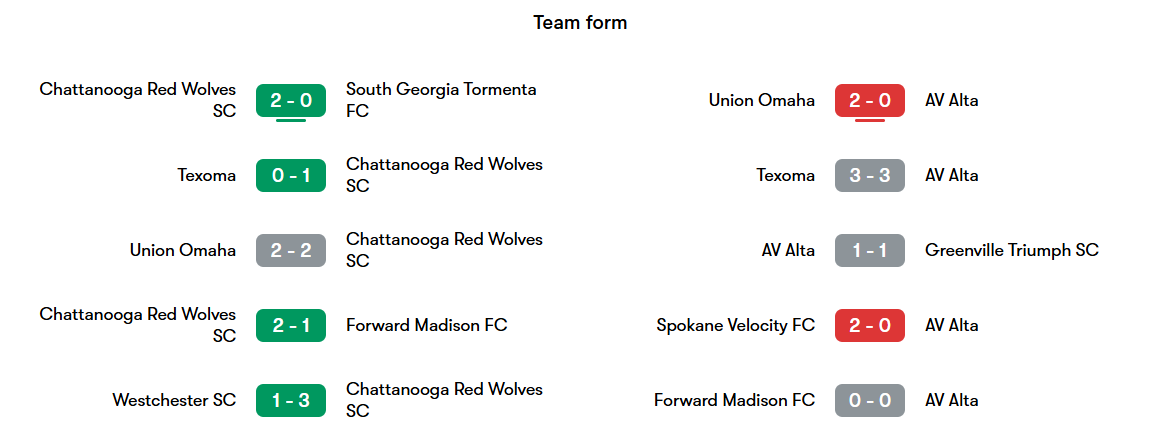 Given this is Alta’s first ever season, today's match will be just the second time these sides have met. Back in April, they engaged in an entertaining battle in California, with Alta winning 3-2. A Matt Bentley penalty had put Chattanooga ahead before a fine brace from former Red Wolves attacker Jimmie Villalobos swung the pendulum in Alta’s favor. Bentley then replied with a stunning volley to level things up, and a draw seemed likely. Finally, on 85 minutes, Tobi Jnohope took down Alta’s Jerry Desdunes in the box, allowing for substitute Joaquin Acuna to slot home the resulting penalty and win it for the home side.