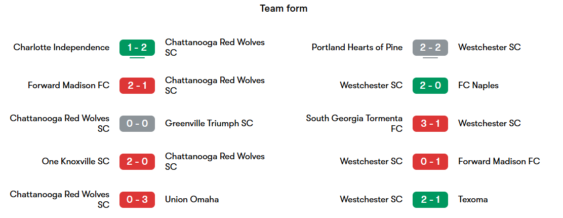Match: Chattanooga Red Wolves SC v Westchester SC