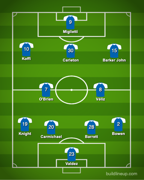 In midfield I have Ethan O’Brien, who has been hugely important to this team, alongside Moises Véliz, who I think should be rewarded for a man of the match type performance against Toronto last time out.