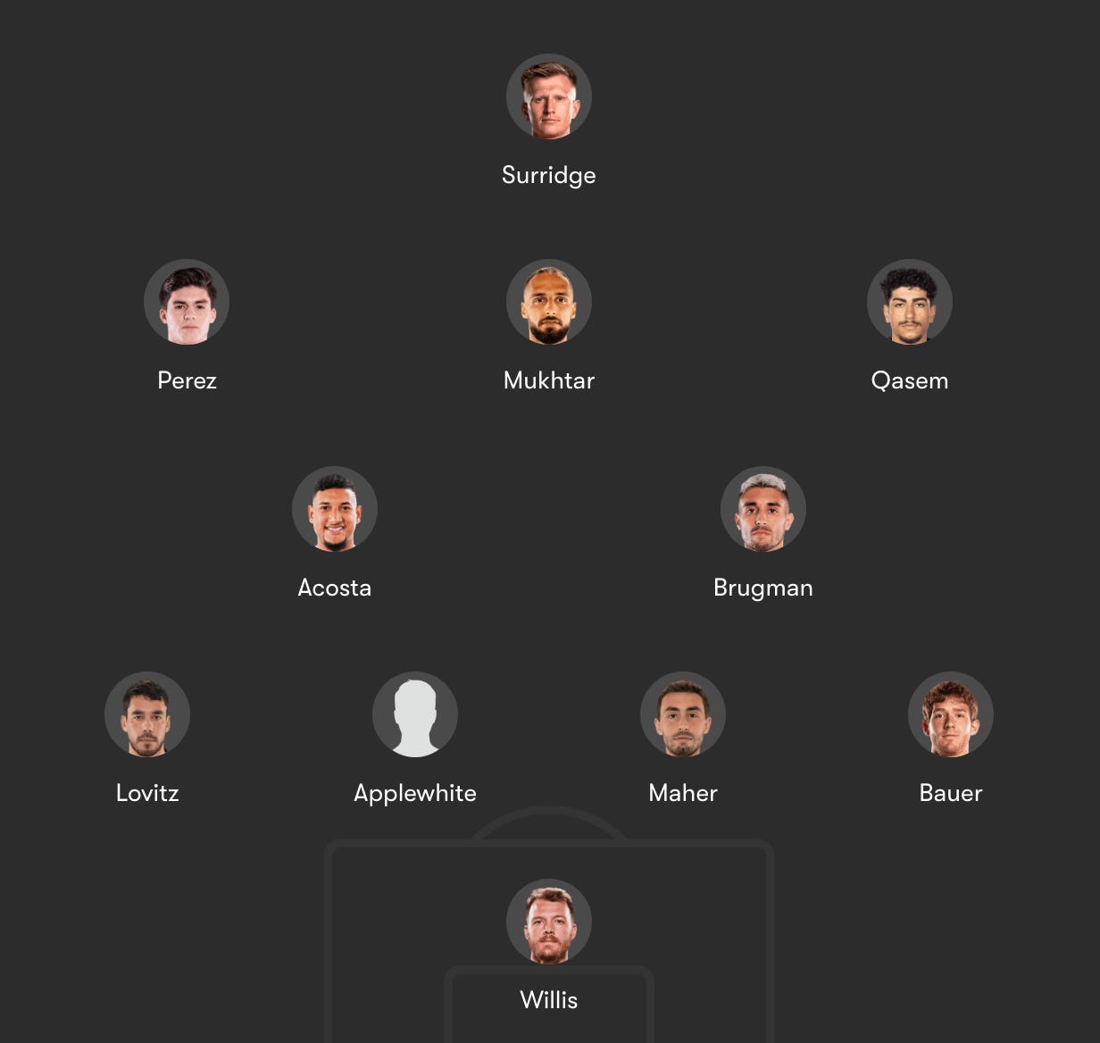 Joining them at the back is Chris Applewhite, who would be making his first MLS start, and Josh Bauer. The midfield pairing would be Bryan Acosta and Gastón Brugman, who are just behind the lead duo of Eddi Tagseth and Patrick Yazbek in the pecking order at the moment.