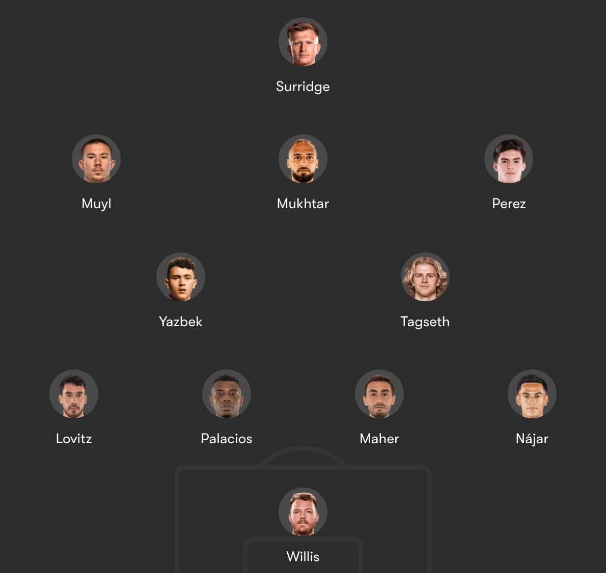Eddi Tagseth also sees the return of Patrick Yazbek to the 11 as his partner in the midfield. They’ll supply a front four of Alex Muyl, Hany Mukhtar, Sam Surridge and Jonathan Pérez, who is the third change.