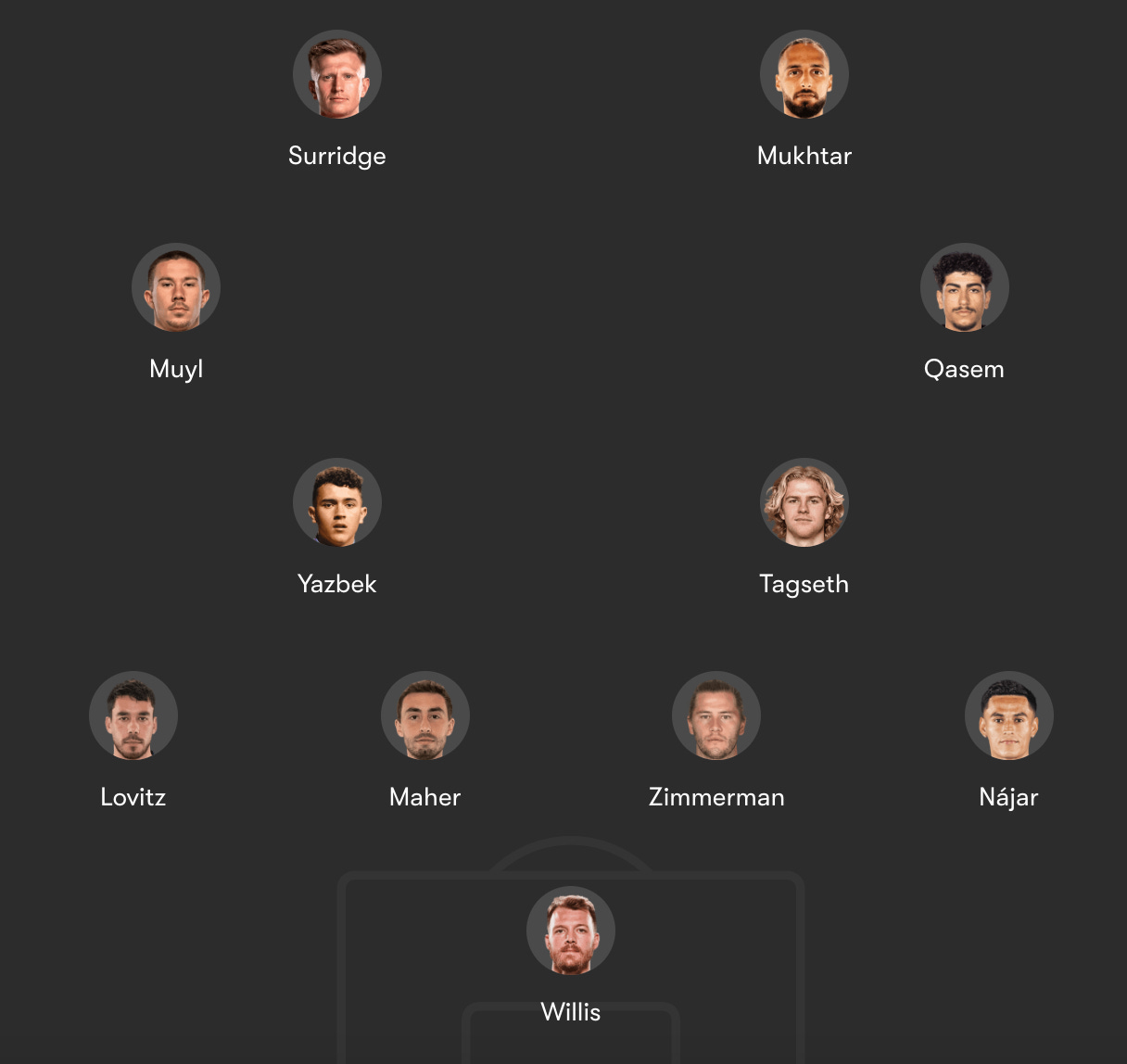 In midfield, I have Patrick Yazbek and Eddi Tagseth running it back again, providing support to a front four of Ahmed Qasem, Alex Muyl, Hany Mukhtar and Sam Surridge.