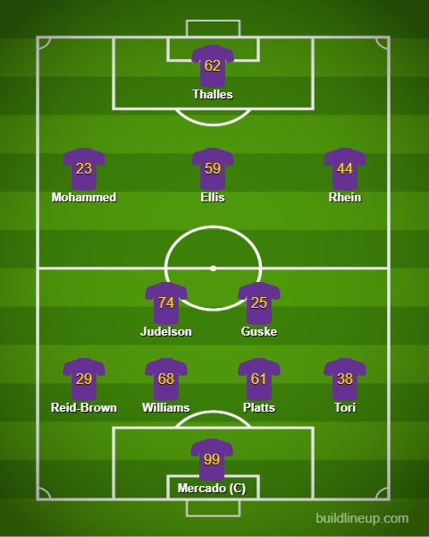 Ahead of Mohammed and Ellis up front will likely be Brazilian forward Thalles. He is on loan from Botafogo.