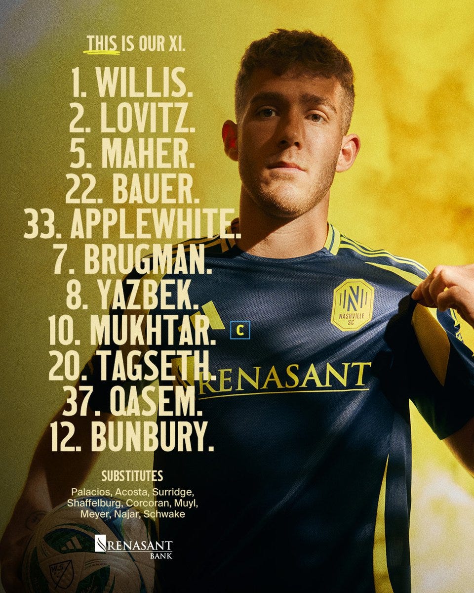 Nashville knew they could get a result without getting out of 2nd gear in this one, and the starting lineup tells the same story. Sure, the “best 11” of the last few weeks all played, many of them 90 minutes, but there was a good bit of rotation in spots.