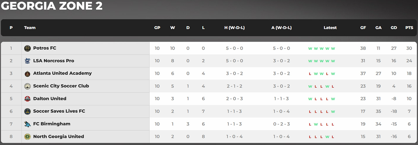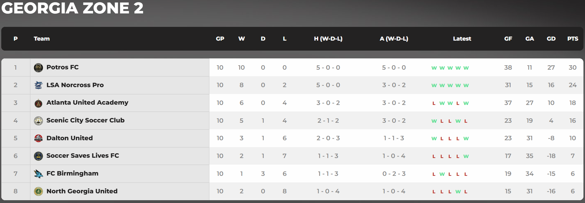 Scenic City look ahead now to a playoff match against either Atletico Buford or Kalonji Pro-Profile of Georgia Zone 1 [unknown at the time of writing] and a bonus run into the post-season in their first campaign in the top flight. North Georgia have some talented players but ultimately will settle for eighth and last place in Zone 2.