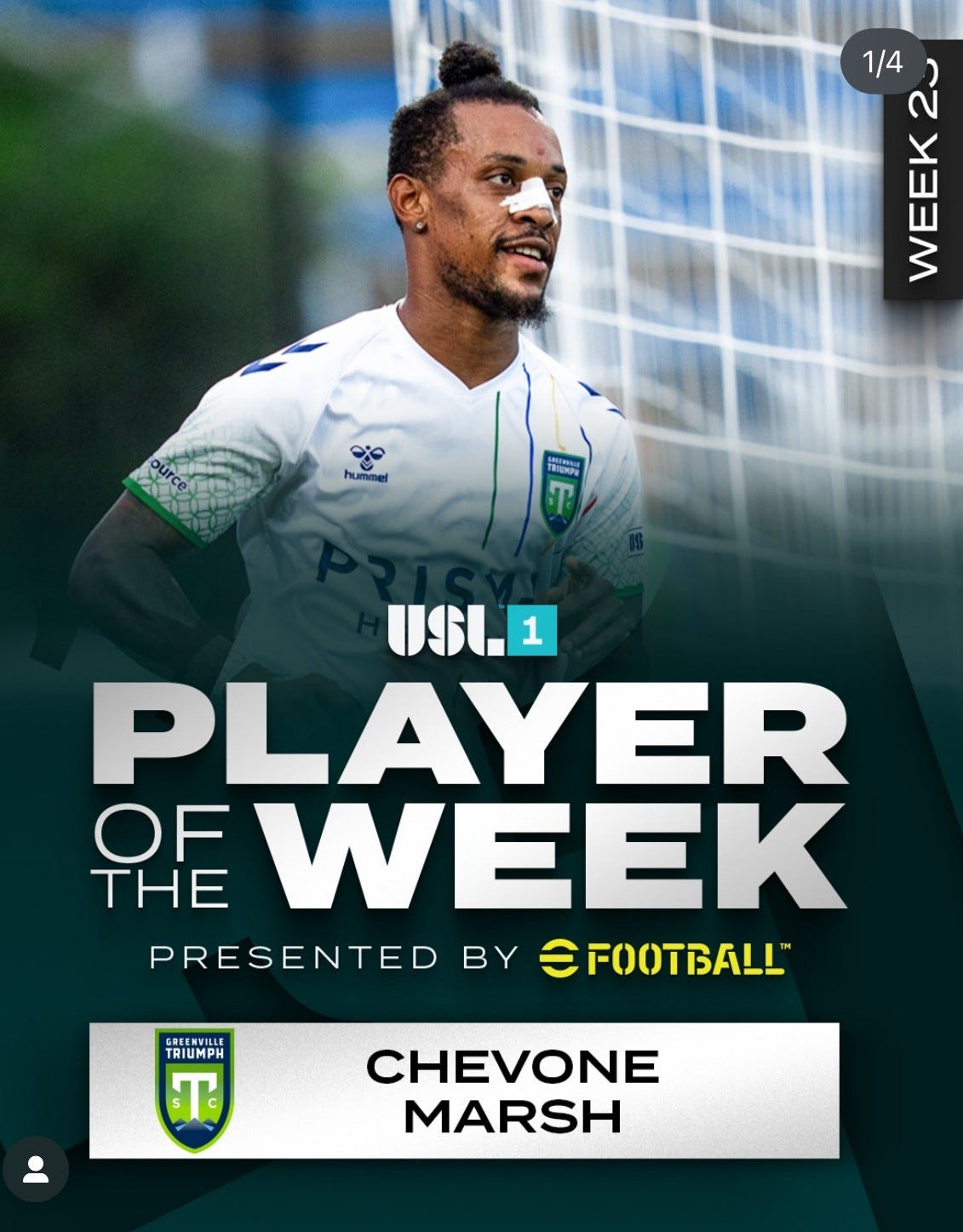 It was a wild 5-4 win for the Greenville Triumph on the road in Charlotte last Saturday night. Chevone Marsh posted a hat trick and Ben Zakowski picked up the late, late game winner at the 90+6 mark to send the Triumph back home down I-85 with all three points in the bag. The Triumph travel to face AV Atra in California this weekend before playing the Indy Eleven on August 20 in the USL Cup quarterfinals in Indianapolis. Marsh for his heroics in Charlotte earned USL One Player-Of-The-Week honors.