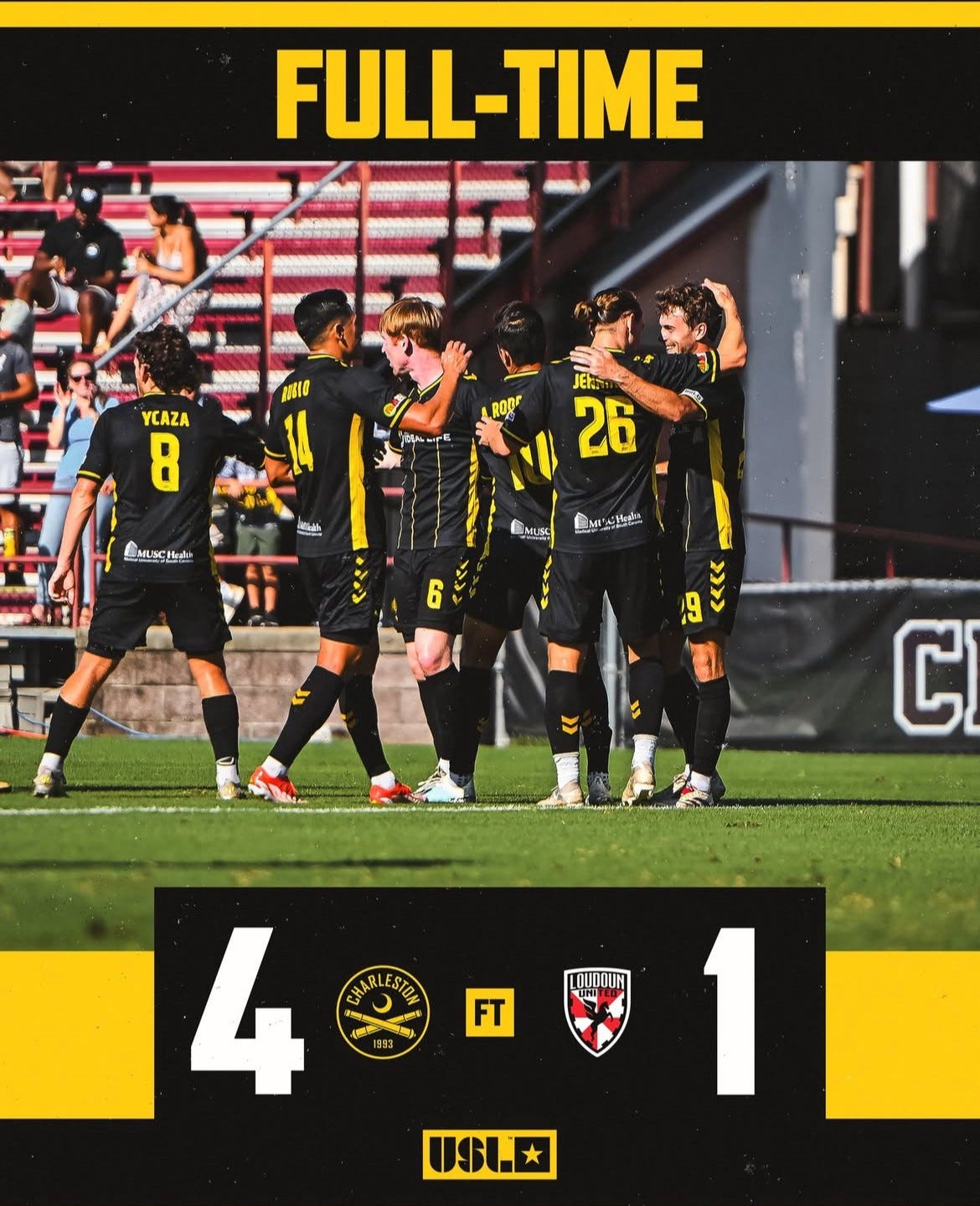 The heavy rains of the weekend postponed the match until Sunday afternoon but that didn’t stop the Battery from blasting visiting Loudoun United 4-1 in a very convincing win at the Point. The win keeps the Battery just a point behind Lou City off the top of the USLC table with 47 points in a two-club race at the top of the Eastern Conference. Kelly, Jennings, Rodriguez, and Myers all scored in the match before Loudoun scored a late consolation goal to complete the score line. The Battery are on the road at Rhode Island on August 30 at 7 PM.