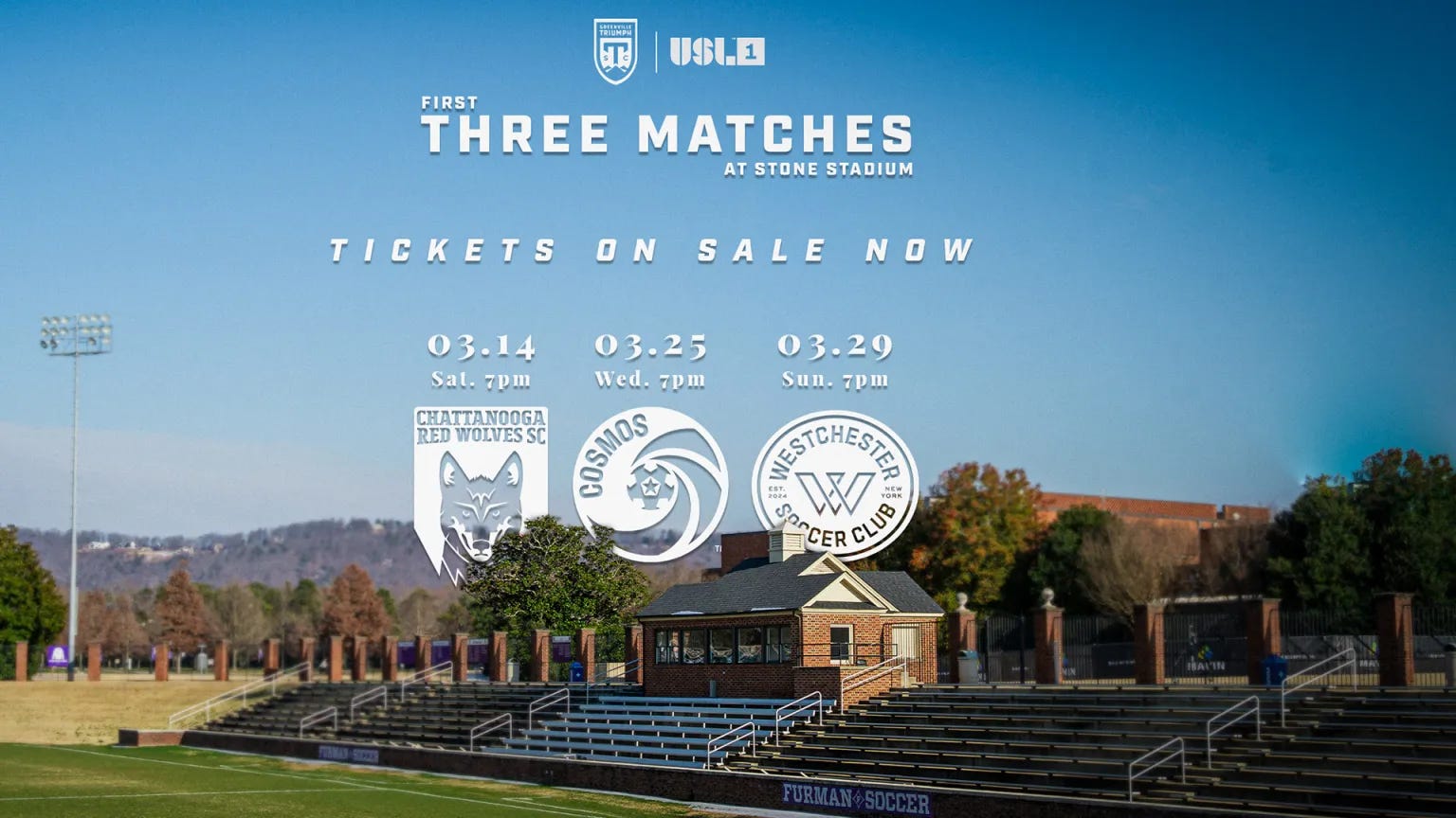 The Greenville Triumph will open the 2026 season hosting their first three matches at Eugene Stone Stadium on the campus of Furman University. This will give the fans one last group of games at Furman ahead of the spring opening of the new stadium GE Vernova Park at BridgeWay Station in Mauldin. The season opener versus Chattanooga on March 14, a mid-week clash versus the USL1 expansion Cosmos on March 25, and a Sunday night match against Westchester on March 29 will be the three matches at Stone Stadium. All three matches kickoff at 7 PM.