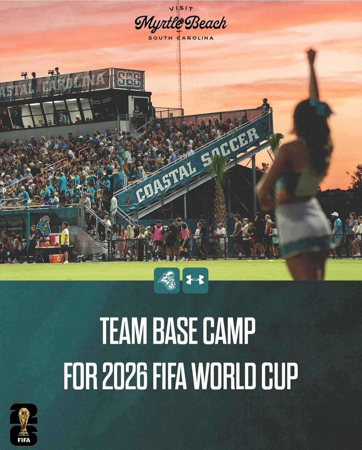 Big news this week out of the Grand Strand as Coastal Carolina University and The Ellie Beach Resort Myrtle Beach were included on the list of possible FIFA 2026 World Cup training sites. 62 sites have been identified in the US, Canada, and Mexico and teams will pick a training location after the December 2025 draw determines the World Cup schedule. Teams will look for a training site that geographically matches their game schedule to minimize travel during the tournament.