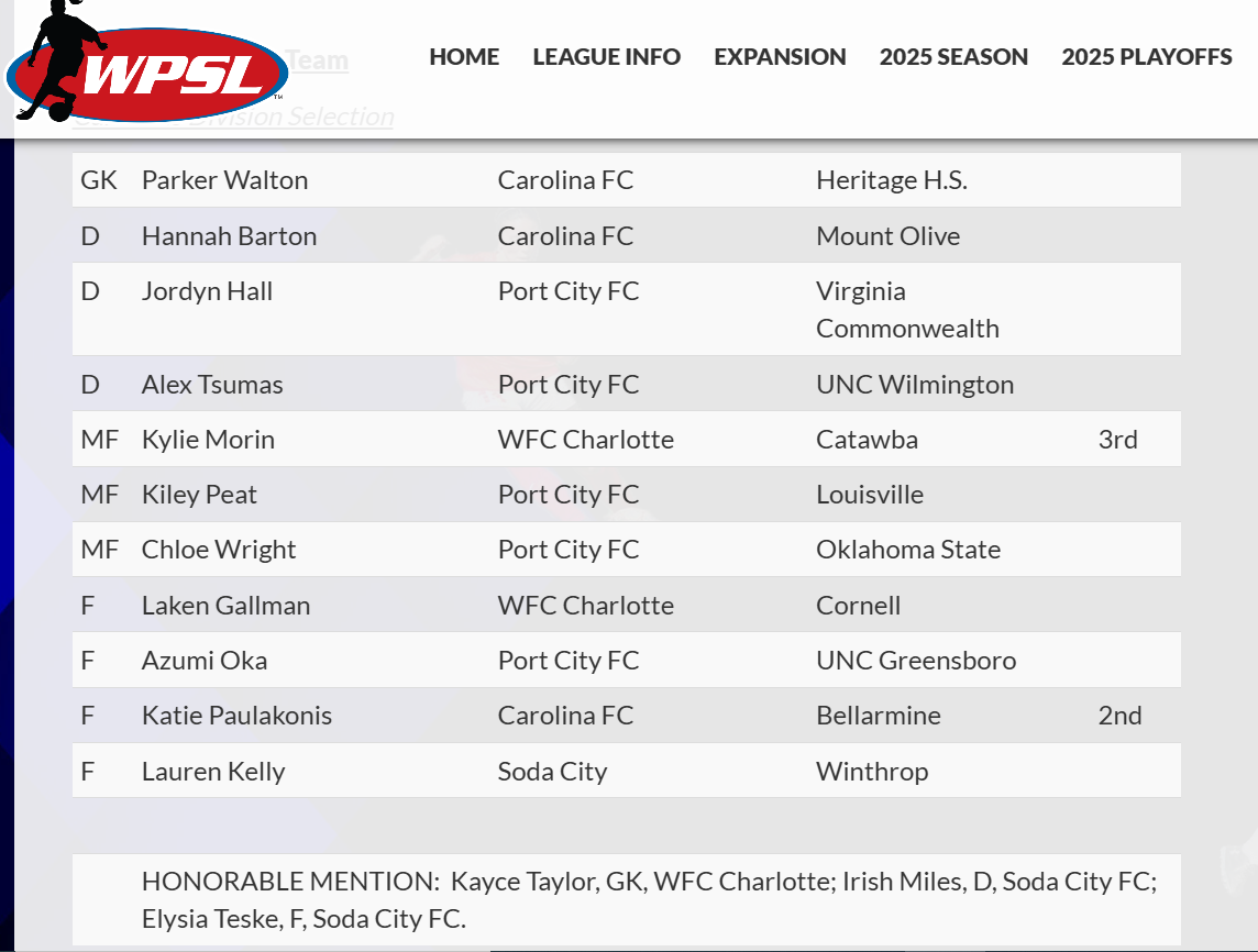 WPSL Atlantic Conference Carolinas Division names Soda City FC forward Lauren Kelly to Spring 2025 Best XI. Honorable mentions also go out to Irish Miles and Elysia “Happy” Teske for the spring season.