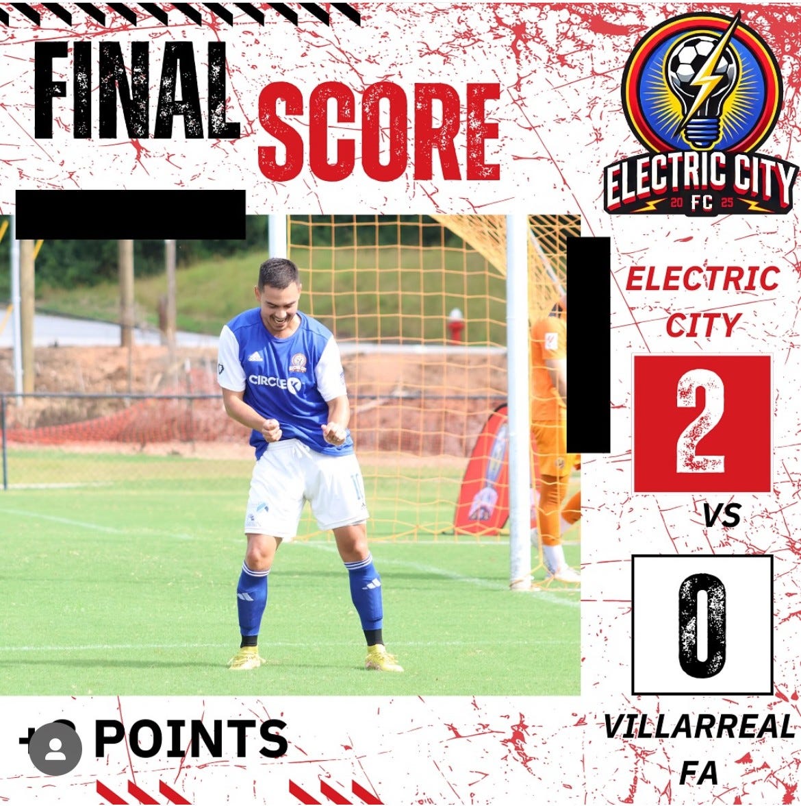 It was a 2-0 win in Anderson on Saturday afternoon over the visiting Villarreal Force to send Electric City FC to the UPSL Mid-Atlantic final next weekend. Julian Sepulveda and Noah Burkett scored the Electric goals. The winner of the Wake Futbol Club-Liberty FC match will travel to play Electric City next weekend.