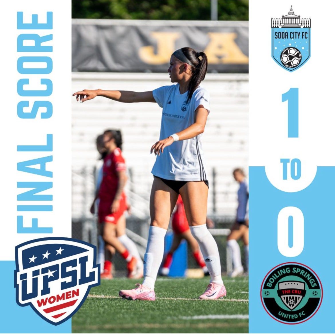 It was a 1-0 win for the Soda City UPSL women over Boiling Springs in the first round of the Mid-Atlantic playoffs Saturday night in Irmo. Karla Gordon chipped the keeper to see Soda advance to the next round. Soda will now travel to play at Rush United in Virginia next weekend.