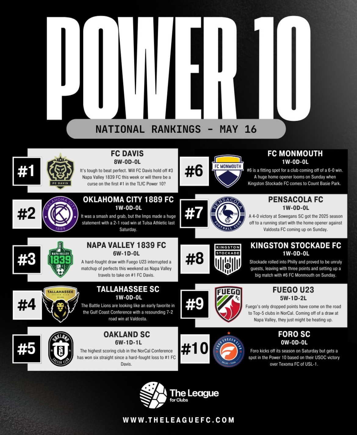 The League for Clubs released its first “Power 10” rankings last week, with Pensacola FC rated seventh among TLfC’s 51 affiliated clubs after its 4-0 road win against Sowegans SC of Leesburg, Ga., May 10.