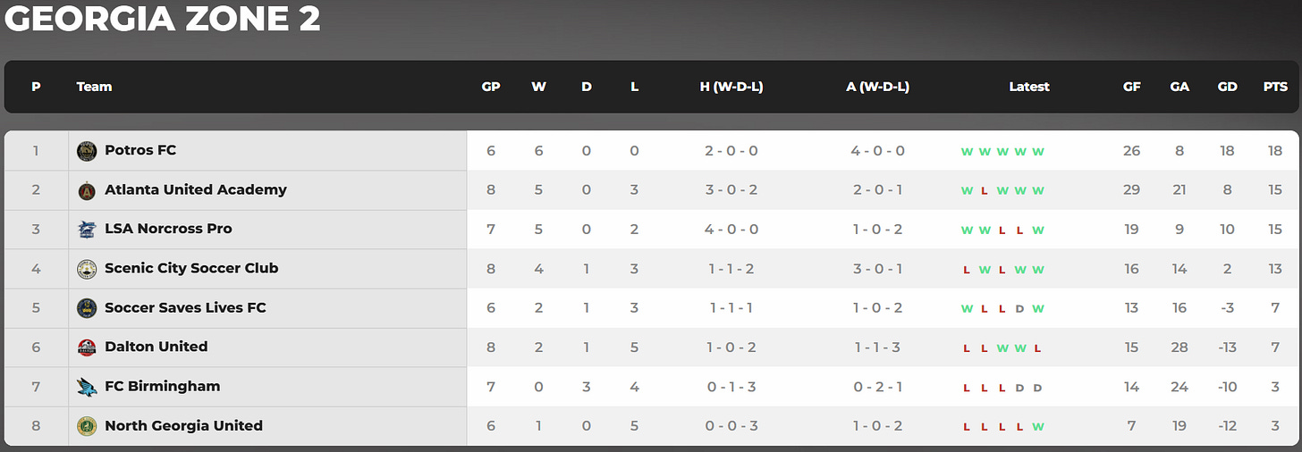 Scenic City SC will take great heart from imposing these records on Potros, even if they were left empty-handed at full-time. Coming into the game with a spate of injuries, they faced an uphill task against the Spring champions, who arrived in Chattanooga with five wins from five, having scored 23 goals and conceded only six. Scenic City likely deserved at least a draw for their efforts but were undone by small mistakes and a rather baffling refereeing decision.