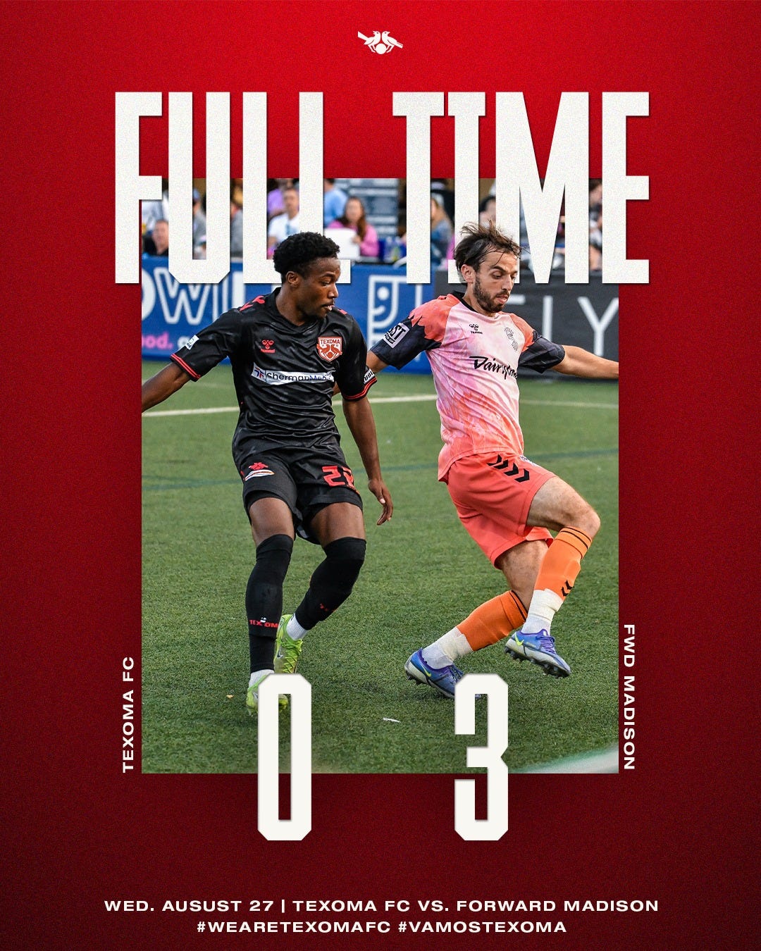 08/27/25 - Texoma FC’s first season ends in only 9 games, they face the team in second to last, Forward Madison FC. Texoma appeared to approach this game with excessive confidence. Their cautious play and reluctance to aggressively advance ultimately proved detrimental to their performance.