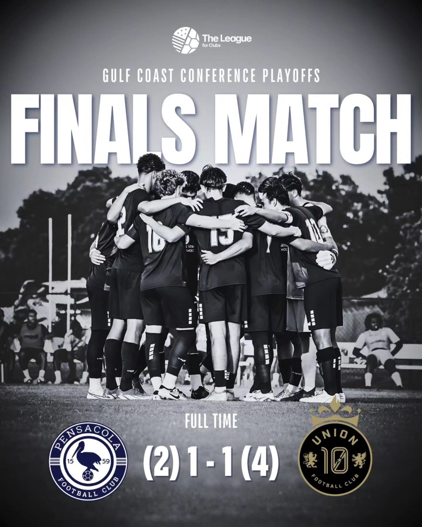 On Pensacola’s fourth try, Rodrigo Bacci sailed his shot over the left side of the crossbar, leaving PFC trailing 2-3. Binaghi buried Union’s fourth shot, giving the East Division champions an insurmountable 4-2 lead and claiming the Gulf Coast Conference crown for the visitors.