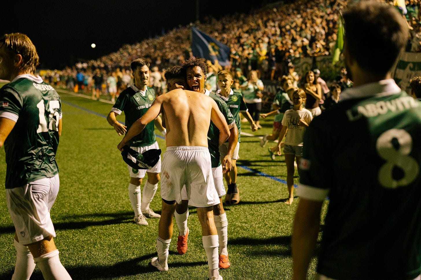 Vermont Green needed overtime to beat Lionsbridge on Friday night. Regular time ended tied up at 1-1, but Vermont surged and got two more in overtime to put it to bed 3-1 to win the Eastern Conference championship. There was a huge crowd on hand, and they'll be back in force on Sunday.