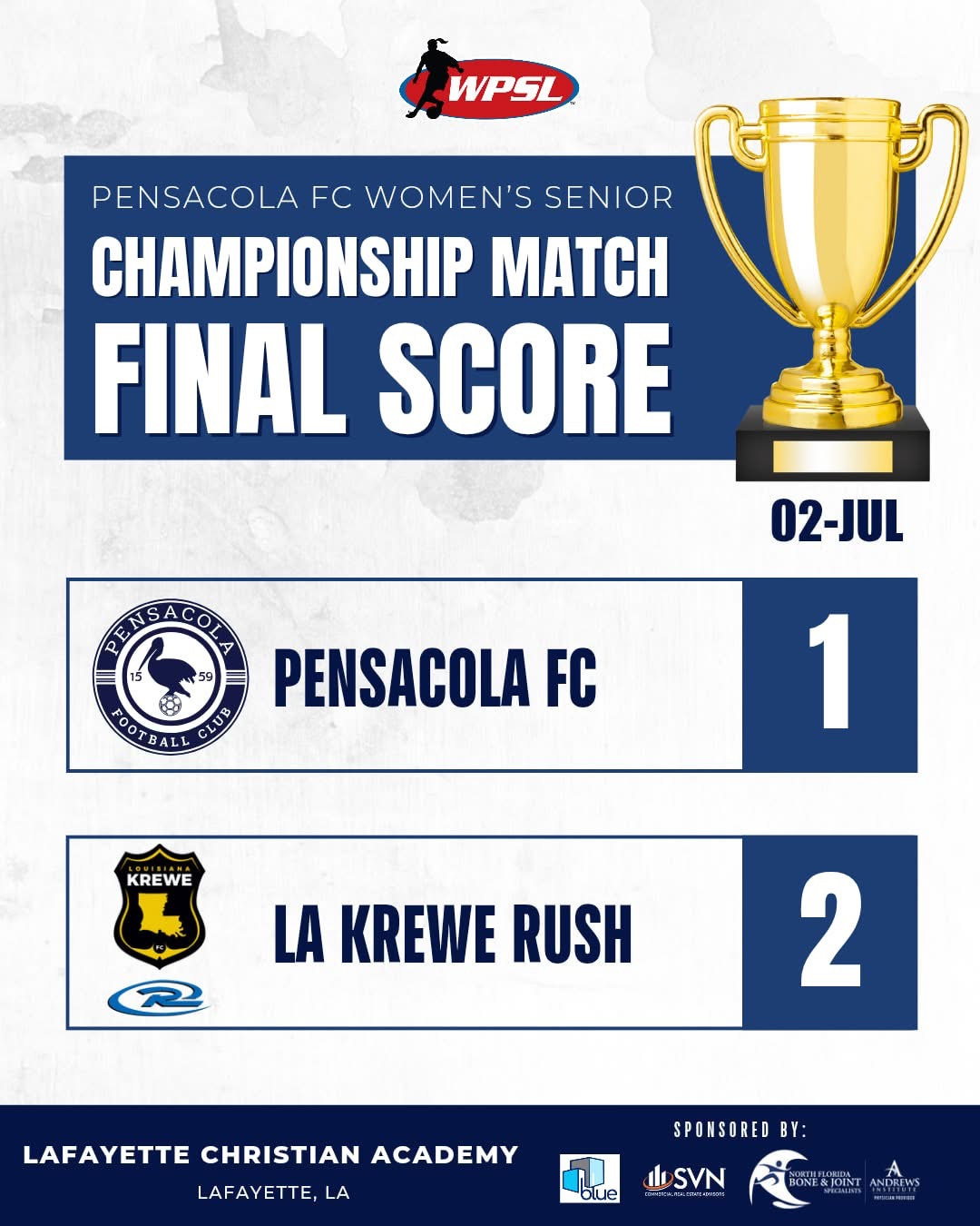 WPSL Gulf Coast: Krewe Rush upset unbeaten Pensacola for conference crown